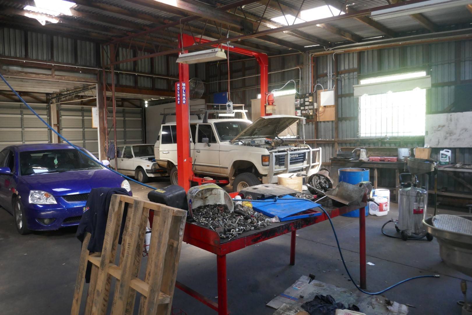Parking is not a problem and once you enter the main reception area, it opens out to a large, tiled show room plus another covered showroom, 5 offices, several service bays, some of which you can drive through, staff amenities room and a massive mezzanine for storage.