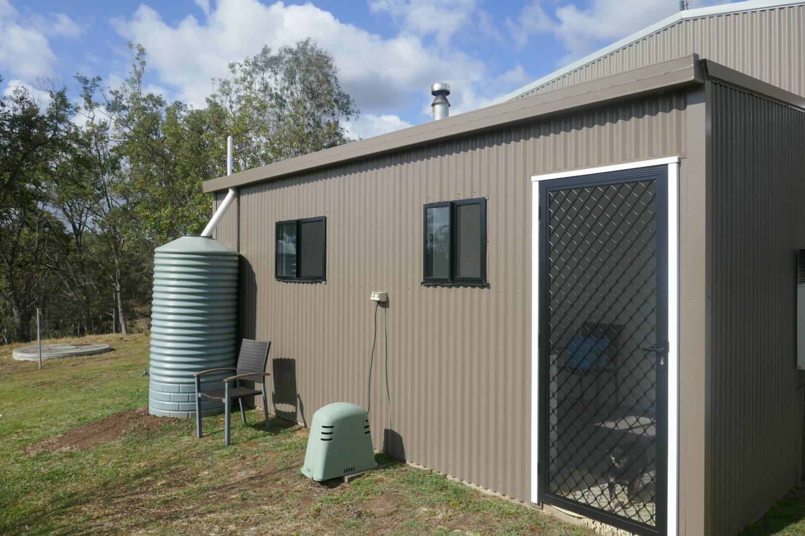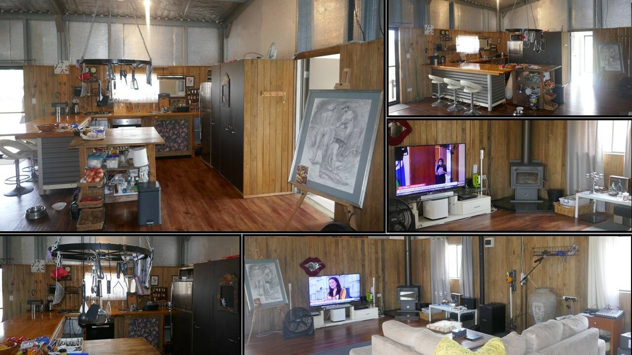 The main building is a steel and colourbond shed with a open plan living area. It has all the comforts you need including a wood heater, air conditioning unit, a new bathroom and laundry, as new septic, rustic kitchen with all the modern conveniences including a gas stove and hot plate.
