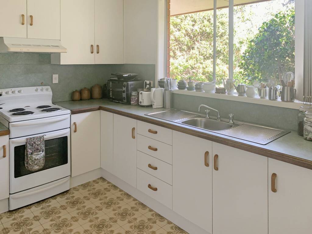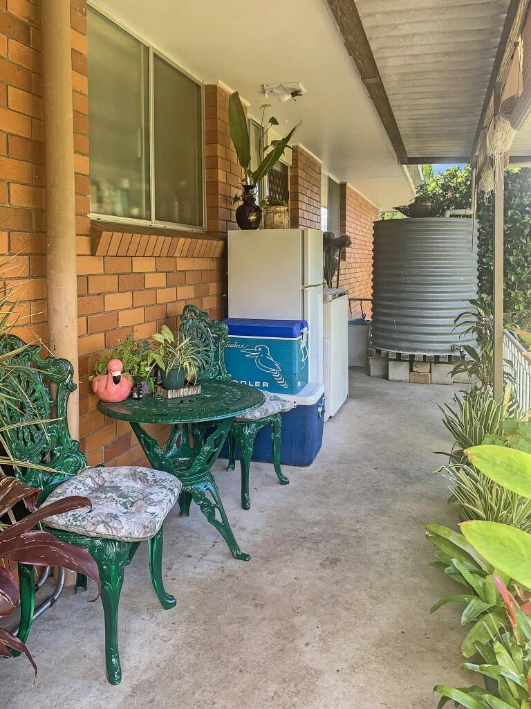 The home features three bedrooms, two of which has built-in wardrobes, there’s ceiling fans throughout, a spacious living and dining room which is adjacent to kitchen. Out the back is a veranda to overlook the well-maintained backyard which is bordered by hedges and gardens. Other features include a lock up garage beneath with room for storage and a small rainwater tank for the gardens.