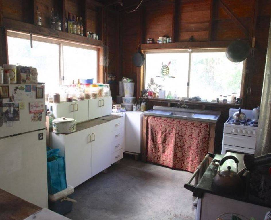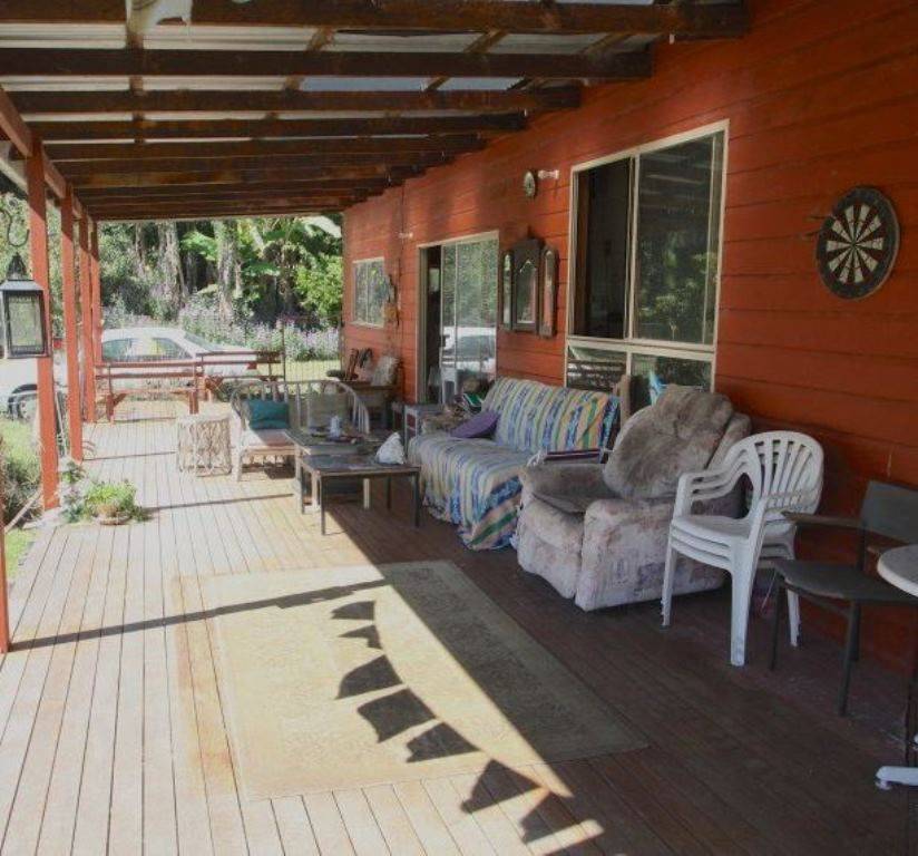 A four bedroom timber home featuring a huge 3 metre wide verandas with wonderful views of the Border Ranges and a basic kitchen with gas stove & oven and a vintage fuel stove adding old world charm.