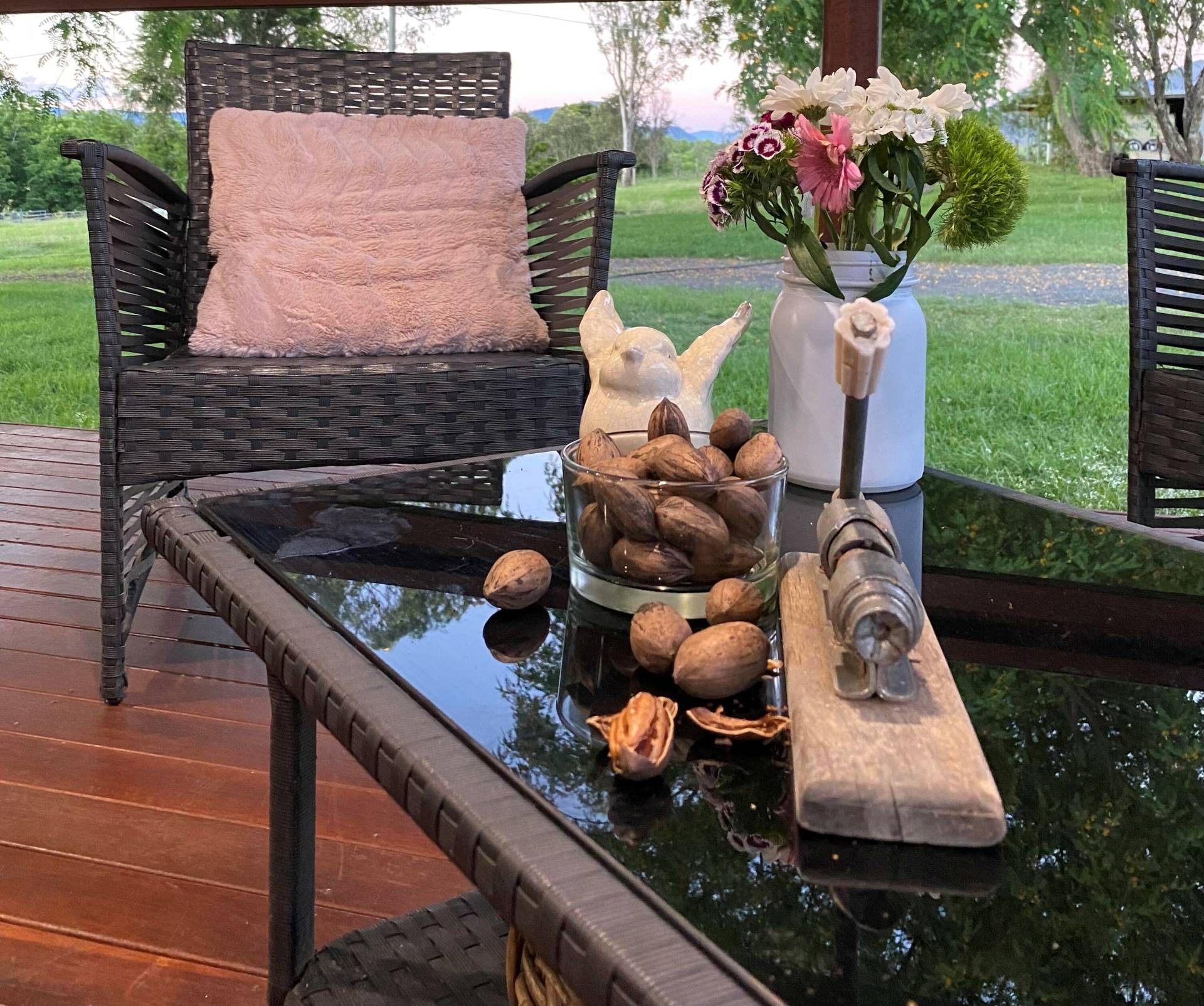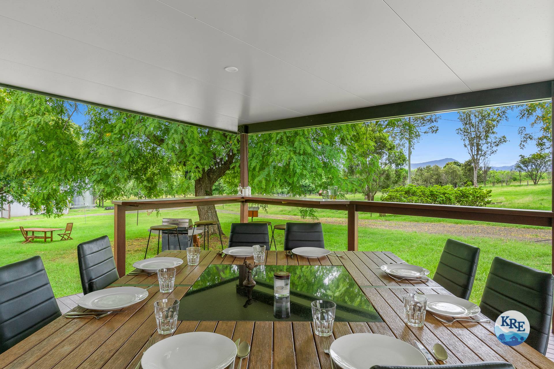 Improvements are extensive and include a very comfortable timber home with a massive covered outdoor living and entertainment area. There is a second dwelling that is fully self-contained for extra accommodation, a teenage retreat, a studio, Farm Stay, guest or workers accommodation. Both the main house and second have air-conditioning with 5G internet access and the main featuring hardwood flooring and ceilings. The property consists of four bedrooms, two sunroom rooms, two bathrooms and an alfresco half bathroom. The house is surrounded by native gardens and beautiful shade trees.