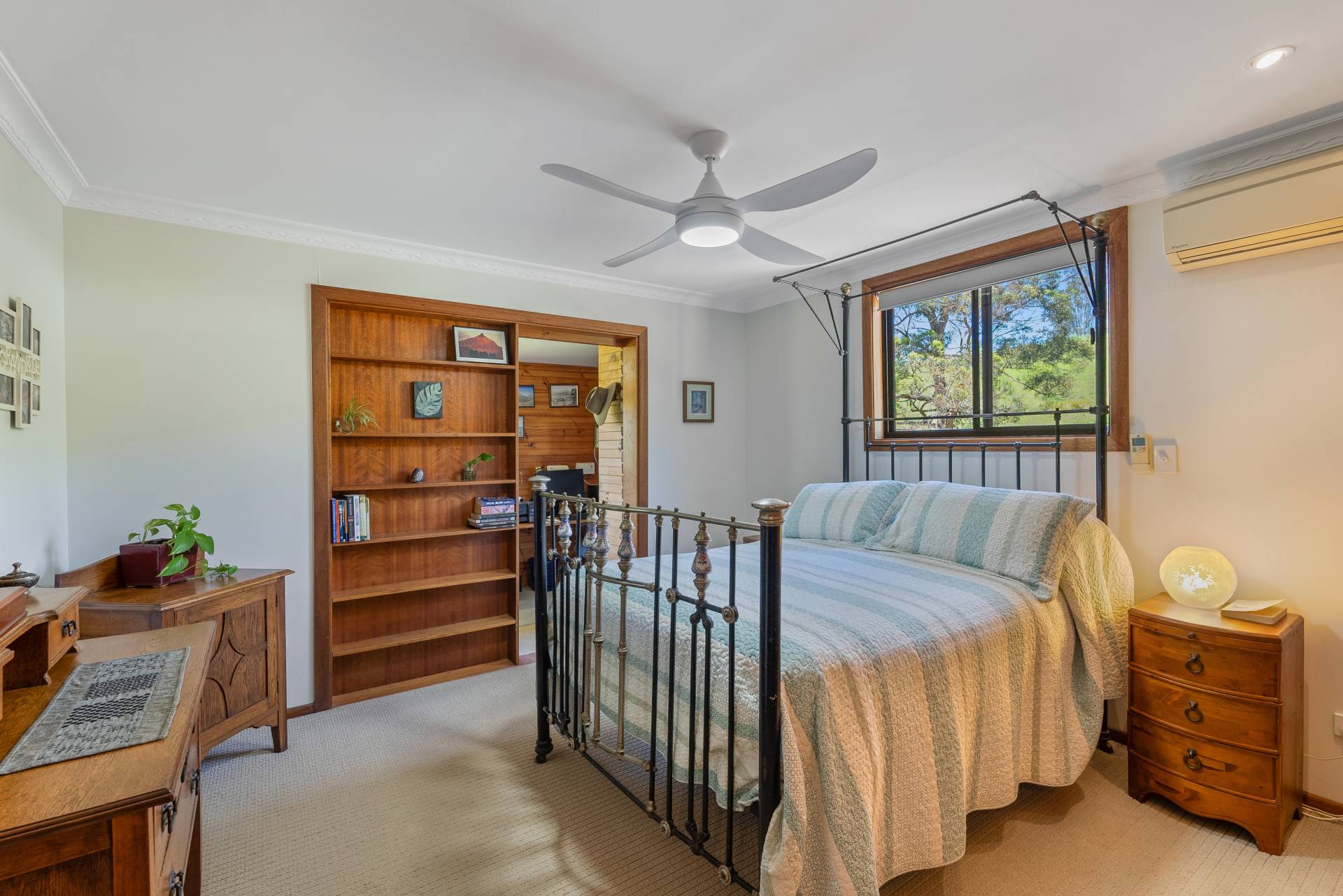 Throughout the home, you'll appreciate the ceiling fans that provide comfort, as well as the polished timber floors. The thoughtfully designed bathroom features a luxurious clawfoot bathtub, a separate shower, and a convenient separate toilet with its own sink. Ample storage space is provided in the hallway, ensuring everything has its place.