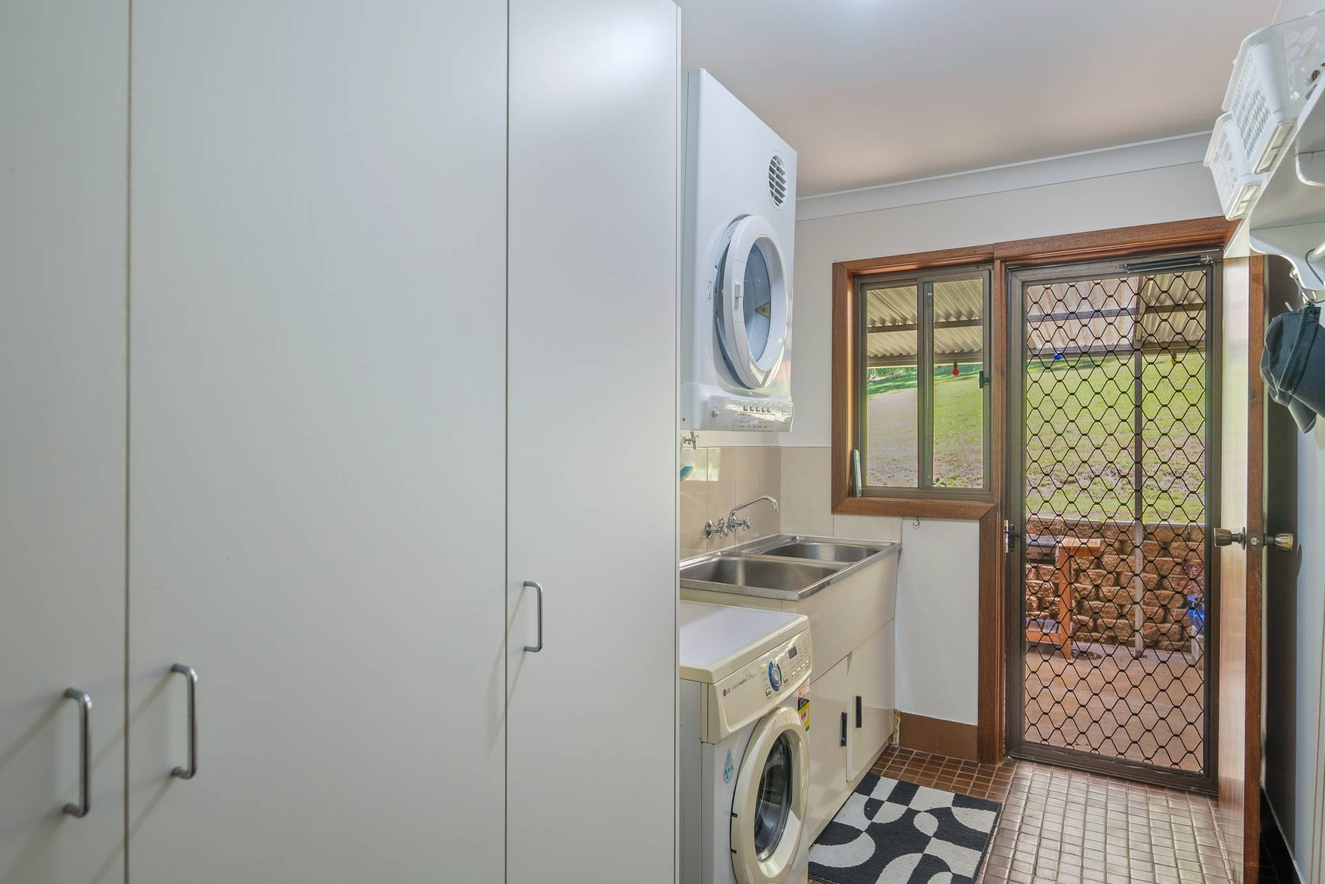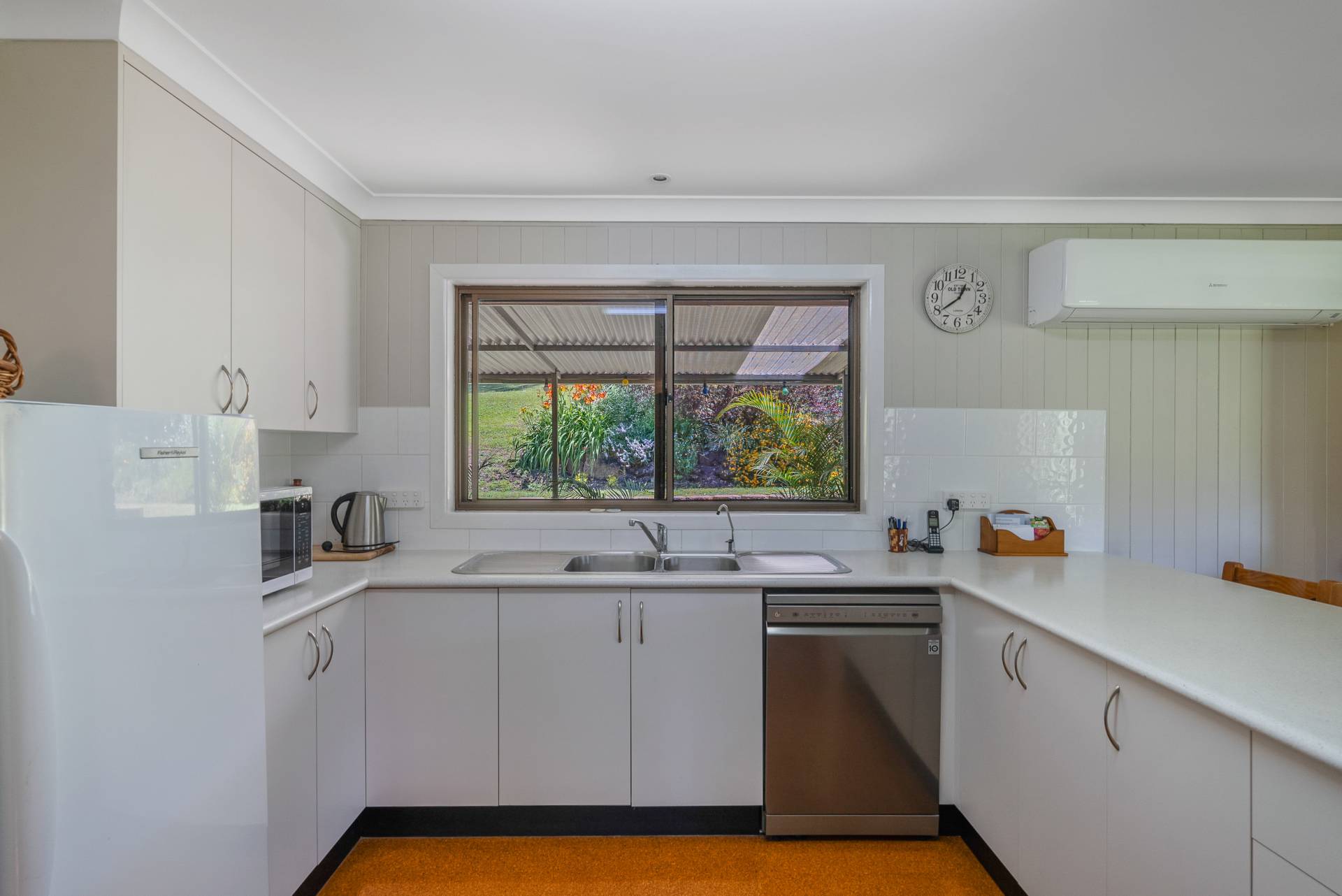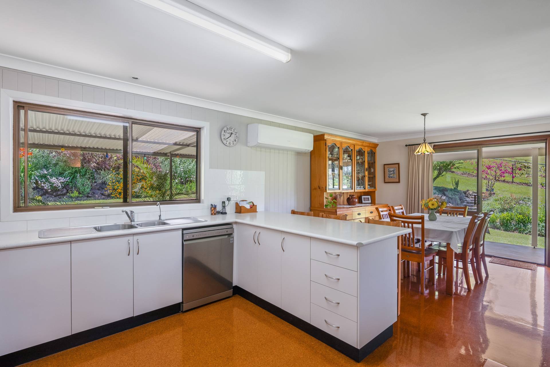 You'll love the layout of the living area, which includes a cozy fireplace and a sizable air-conditioning unit to keep you comfortable year-round. Additional thoughtful touches, like built-in cupboards in the laundry, enhance the home’s functionality.