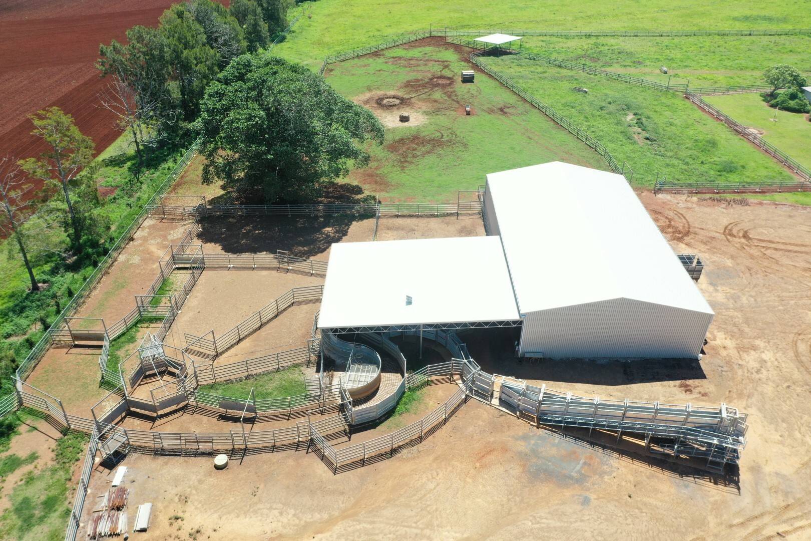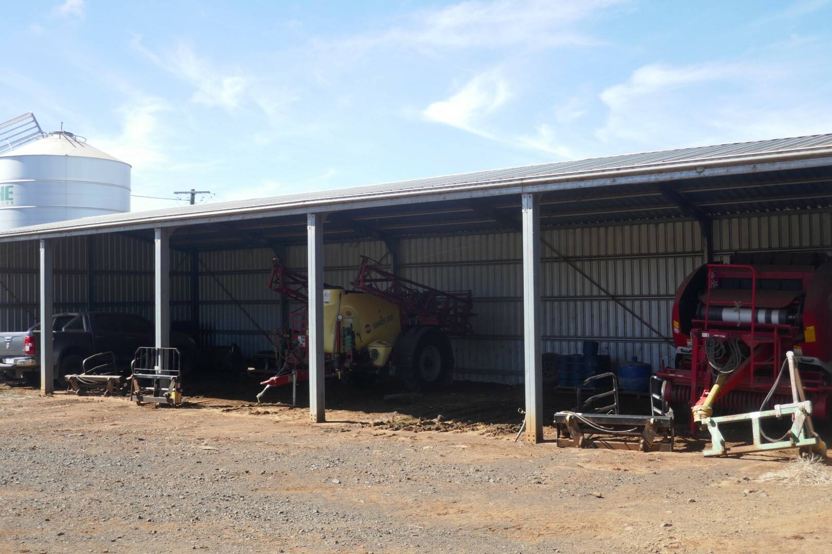 New Steel Machinery Shed 30 metres x 20 metres x 5 metres with 150mm thick concrete floor. A further skillion of 20 metres x 20 metres attached to this shed covers the working area of the cattle yards. There is 3 phase power connected.
