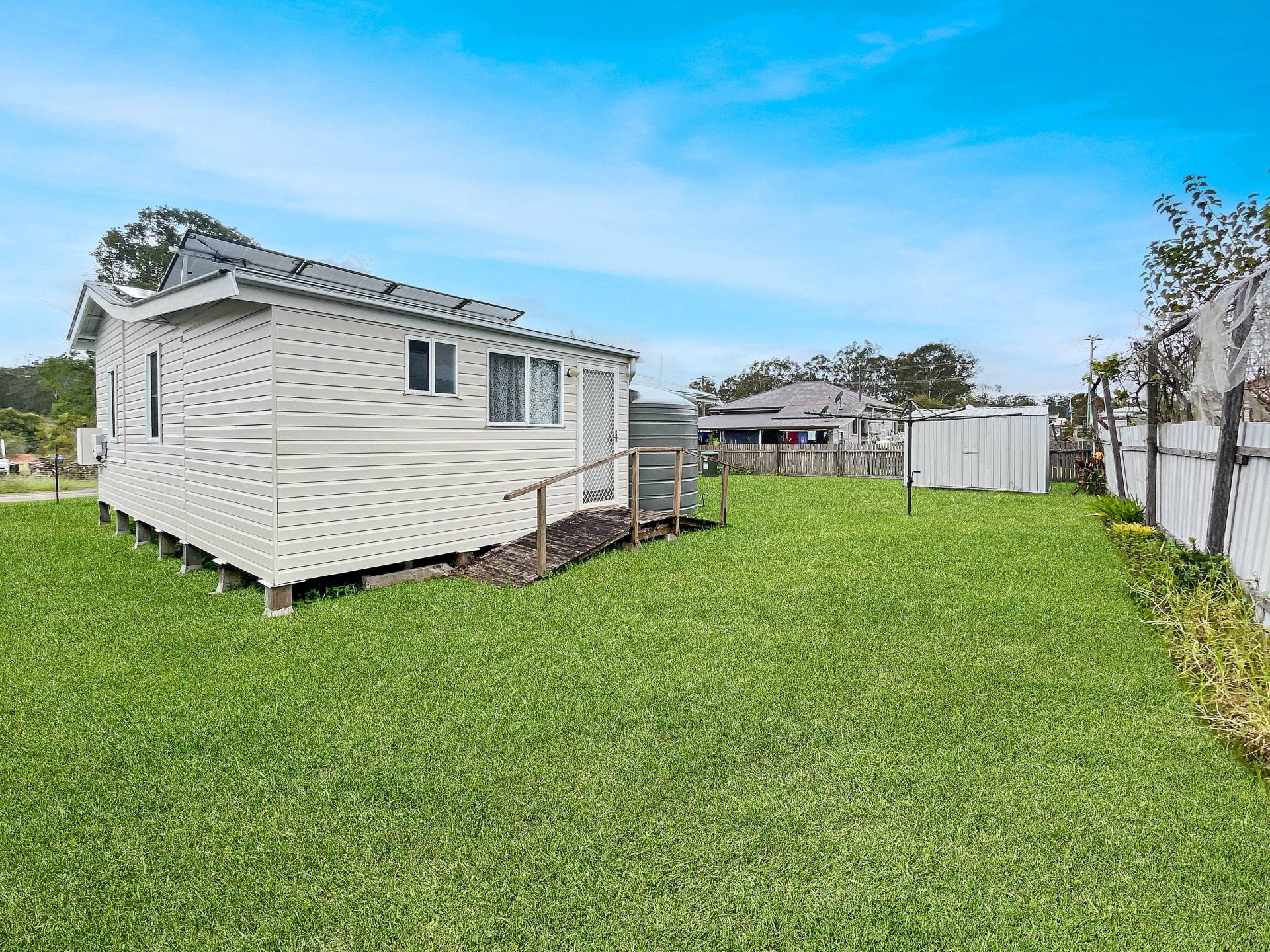 Enjoy the convenience of two bathrooms and a spacious laundry, ensuring plenty of room for your needs. The level, fully fenced yard is ideal for children and pets, while the freshwater tank and solar panels offer eco-friendly features that can help reduce your utility bills.
