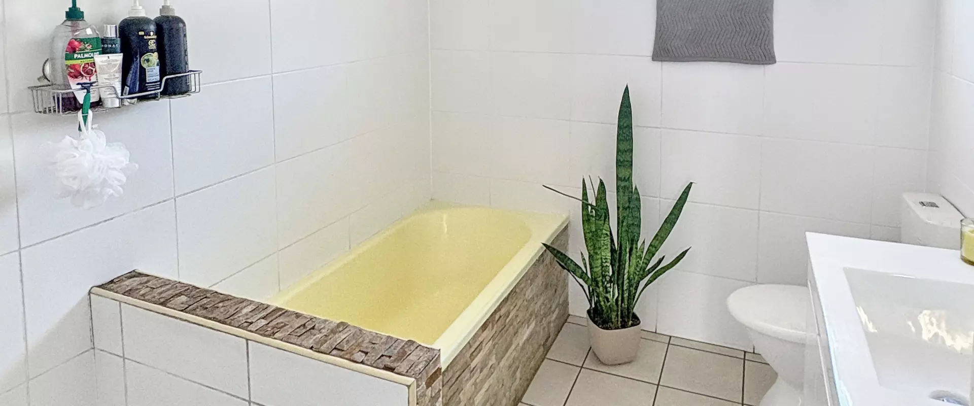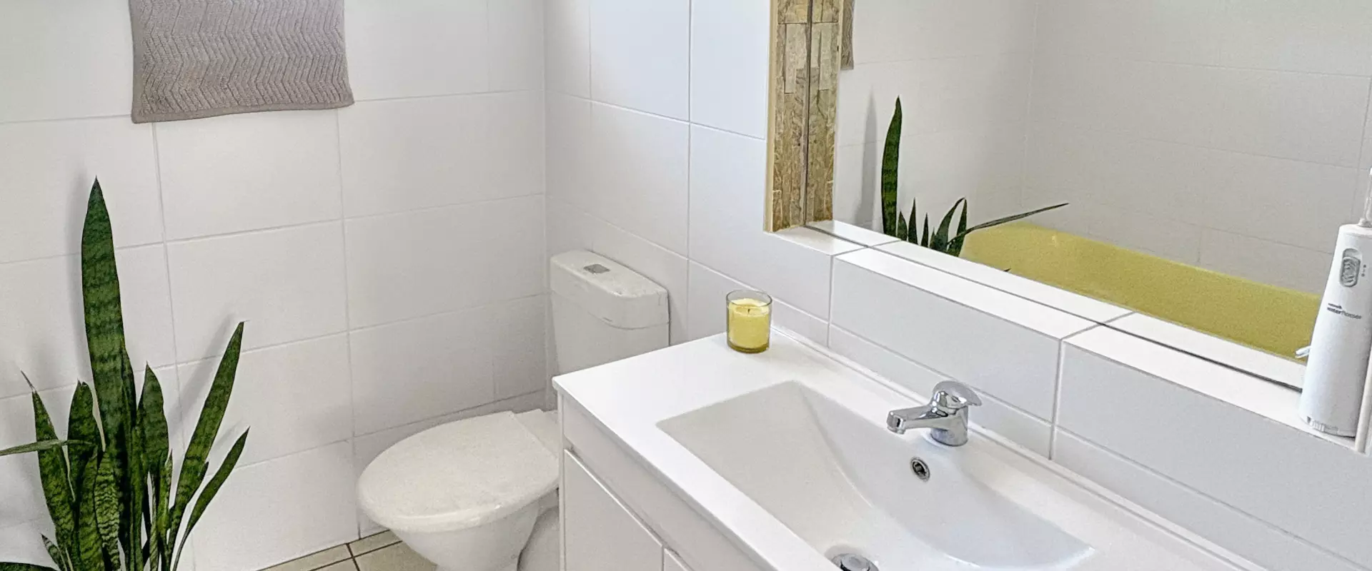 The neat bathroom is complemented by an additional indoor laundry room featuring a convenient second toilet.