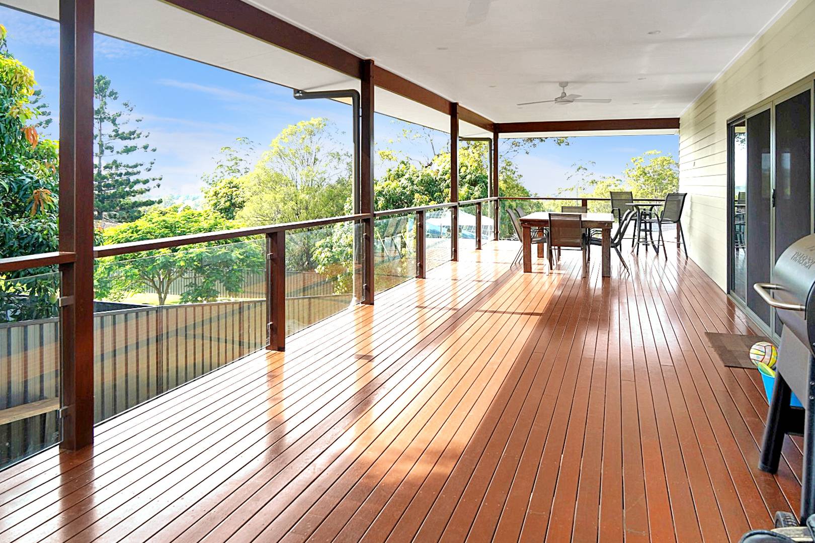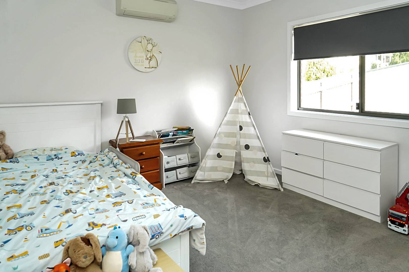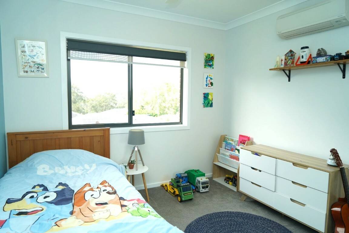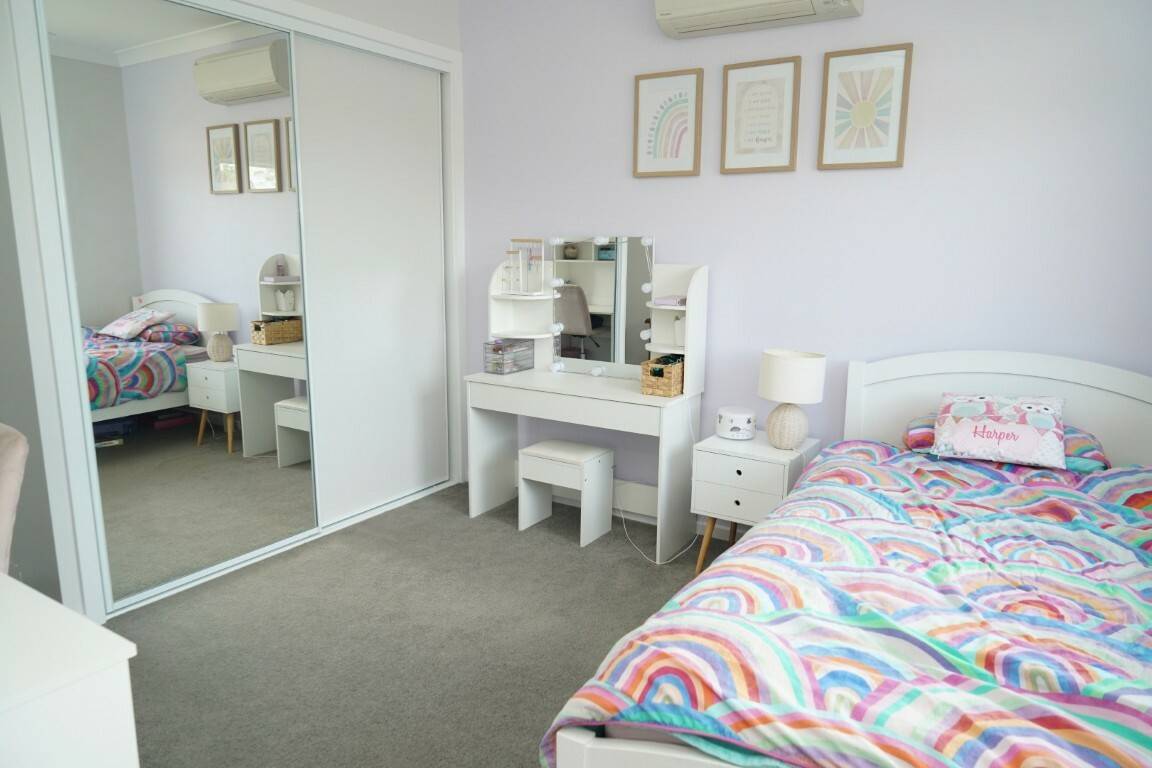 Step inside to discover a generous layout featuring four large bedrooms. The master suite boasts a private ensuite, a walk-in robe, and ample space to relax. The remaining three bedrooms are equipped with built-in wardrobes, providing plenty of storage for family members. High ceilings throughout enhance the bright, airy feel, while air conditioning ensures year-round comfort.