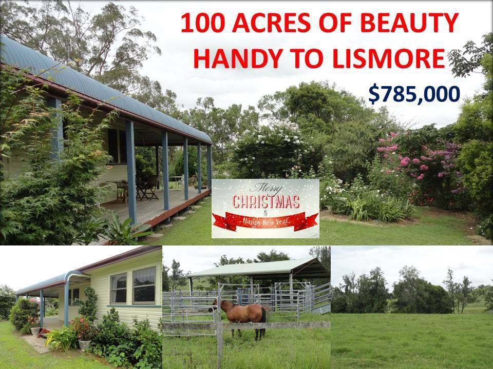 If its all about the view and position then this property should sell tomorrow and the owners will look at all fair offers. Situated only 20 minutes to Lismore is this tastefully renovated timber homestead sitting on the highest part of the property to take in the panoramic views of the valleys and mountains. The house has 3 spacious bedrooms, timber flooring, a kitchen suitable for a chef, open plan living and dining area, French doors off the main bedroom onto a wide covered veranda's and a double carport. Other improvements include a as new colour bond shed with three open bays and one lock up, steel stockyards with covered stables.