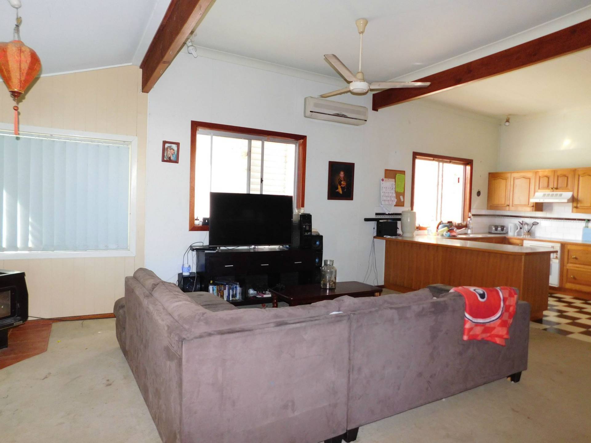 With three good size bedrooms an extra-large lounge dining room and a very functional timber kitchen the home also boasts reverse cycle air conditioning and a fire place to use and enjoy warm comfy winter evenings.