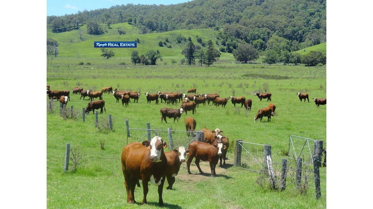 Situated only minutes from CBD of Kyogle is this outstanding cattle property consisting of 225 acres. Improvements include a fully renovated home situated overlooking the property. The house has 4 bedrooms, 2 bathrooms, a large new kitchen with all the mod cons including granite tops, air con plus a wood heater, large enclosed entertaining and sun room plus heaps of other features. The property is very well balanced running from arable flats to basalt ridges covered with Kikuyu, paspalum and watered by 5 large dams and a fully equipped bore producing over 1000 gallons per hour. The property constantly runs 90 cows and calves producing top quality vealers and back in the dairying days was regarded as one of the most productive farms in the Richmond Valley.